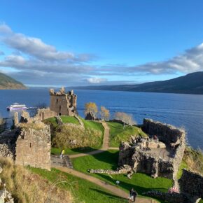 The drive to Loch Ness is spectacular. It’s the iconic Scotland I dreamt about, with the rolling hills and old castles, Tudor homes, and serene countryside. The snow is gone, and sheep roam the green pastures. “Now, this is more like it!” I proclaim in joy. This is the scenery that I envisioned before my departure: a kind, rolling Scotland with lush greenery and gentle breezes. I’m falling in love once again.