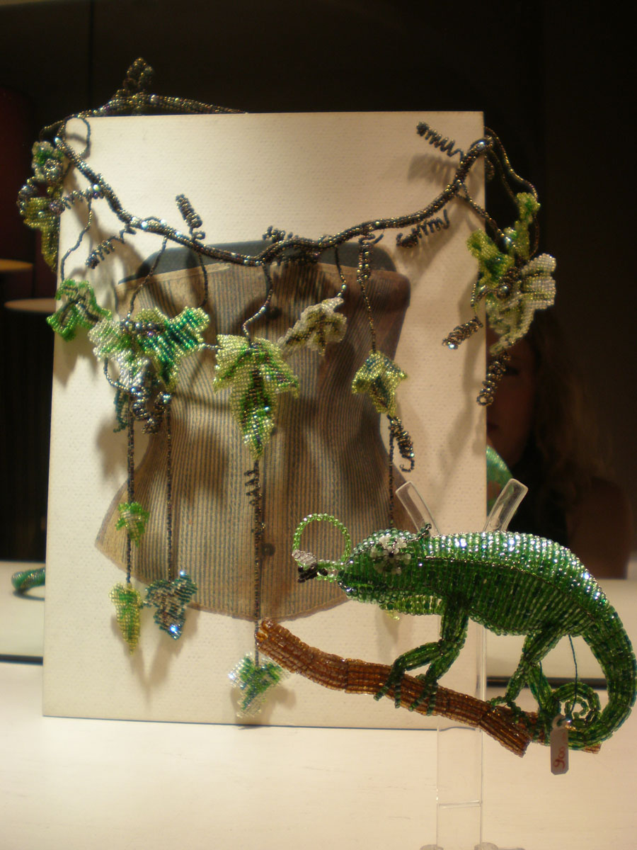 If Lewis Caroll needed inspiration for Alice’s Adventures in Wonderland, he surely would have spent time in the Florentine atelier of Aprosio. The shop is a sparkling space filled with crouching creatures, insects about to take flight, flora, reptiles, and a sprinkling of hearts … all fashioned of Bohemian crystal and Murano glass beads.