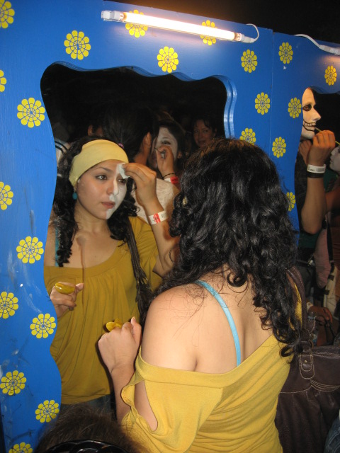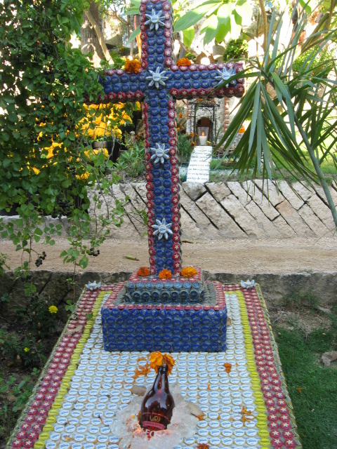 Day of the Dead is an important family event. Everyone works together to clean the gravesite as well as build a home altar (ofrendas) colorfully decorated with candles, photos, flowers, comically ghoulish paper-mache skeletons and sugar-candy skulls as well as the deceased’s favorite food and drink. One local girl told me with a giggle, that she always made sure to include a big bottle of tequila-which was her grandpa’s beverage of choice. She said it is also important to arrange a bright orange trail of marigolds (the flower of the dead) in front of the altar, as well as lighted candles and fragrant baked breads to help guide the spirits home to their loved ones.