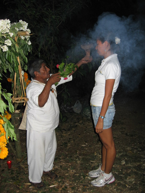 He then blessed each of us, softly chanting Mayan prayers as he waved burning sweet herbs around our bodies.