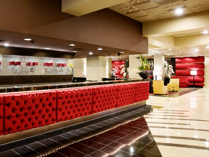 The design elements are modern with a touch of 70’s retro chic. Think Studio 54 meets Saturday Night Fever! Chrome and glass accents dress up the lobby. Contemporary furniture, glittery chandeliers, vintage photos and an outrageous lipstick red tufted front desk give the Plaza true sex appeal. And, who could miss the glowing spaceship structure in the driveway, the Plaza’s majestic dome. It is nostalgic treasures such as this that make downtown Las Vegas unique. Night owls who enjoy a good time but prefer a break from the Strip will not be disappointed. Just outside the Plaza’s front doors, you will find entertainment 24/7 with the Fremont Street Experience – a lively pedestrian friendly party spot speckled with bars, casinos, vendors and more.