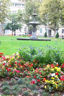 Just outside my hotel, the Hotel Palace is a beautiful garden area surrounded by impressive baroque buildings housing government offices.