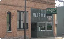 After stocking up at Benny’s grocery, we headed into Waupaca for what I was called “The Memory Tour”. First stop was my Dad’s old café—The Waupaca Café on Fulton street. I learned to waitress there with women named Gert and Mable, and the place made all its own pies, breads and pastries. Wandering in this time, the new owner had begun remodeling, which was nice, but what I wanted most was missing: the huge, bready, buttery homemade cinnamon rolls slathered with butter icing. The days of the pies and pastries were gone, but the counter where I used to wait on the locals was still very much there, with built-in stools that I had wiped down many times.