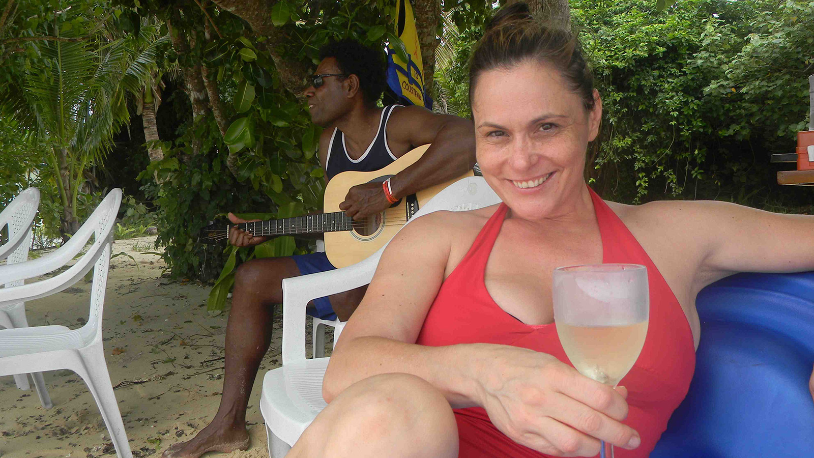 Indeed, the resort does have their own private island, and so, the next afternoon, a group of us jumped into a boat and took the 10-minute ride to this itty bitty piece of paradise. Pete, one of the lovely Fijians who work on the resort joined us with his guitar and a cooler of Fiji Bitters and wine, and for the next few hours we listened to Pete sing to us under the shade of swaying palm trees.