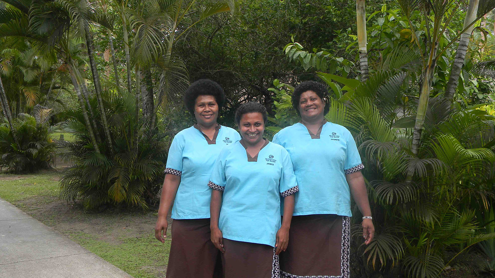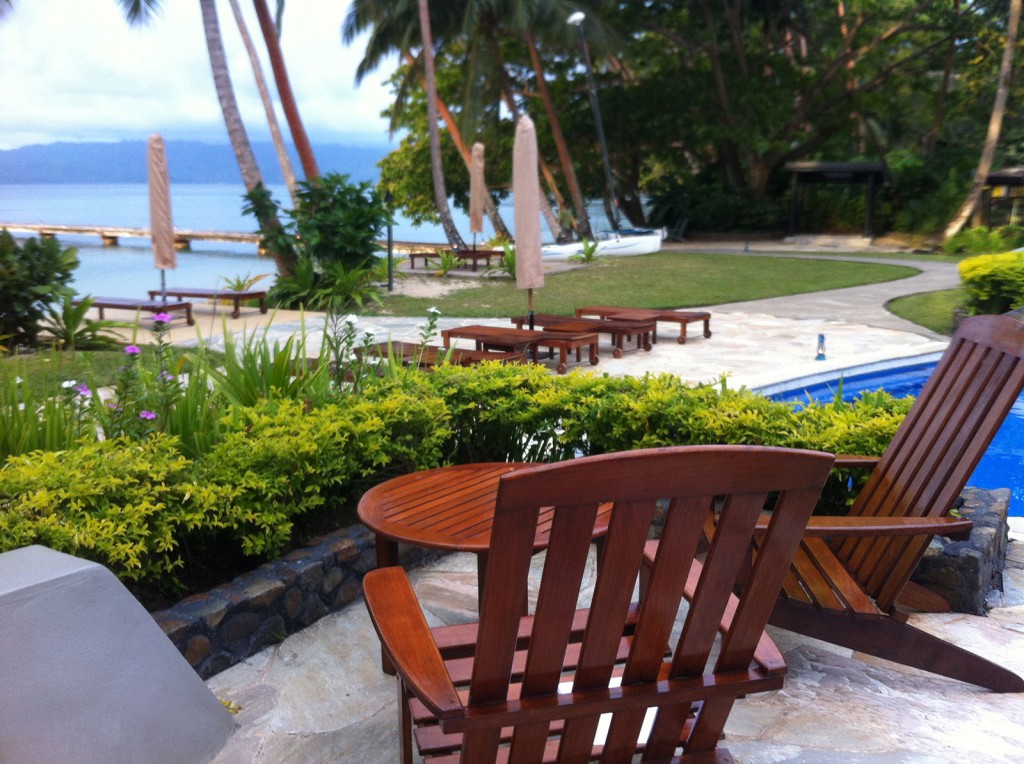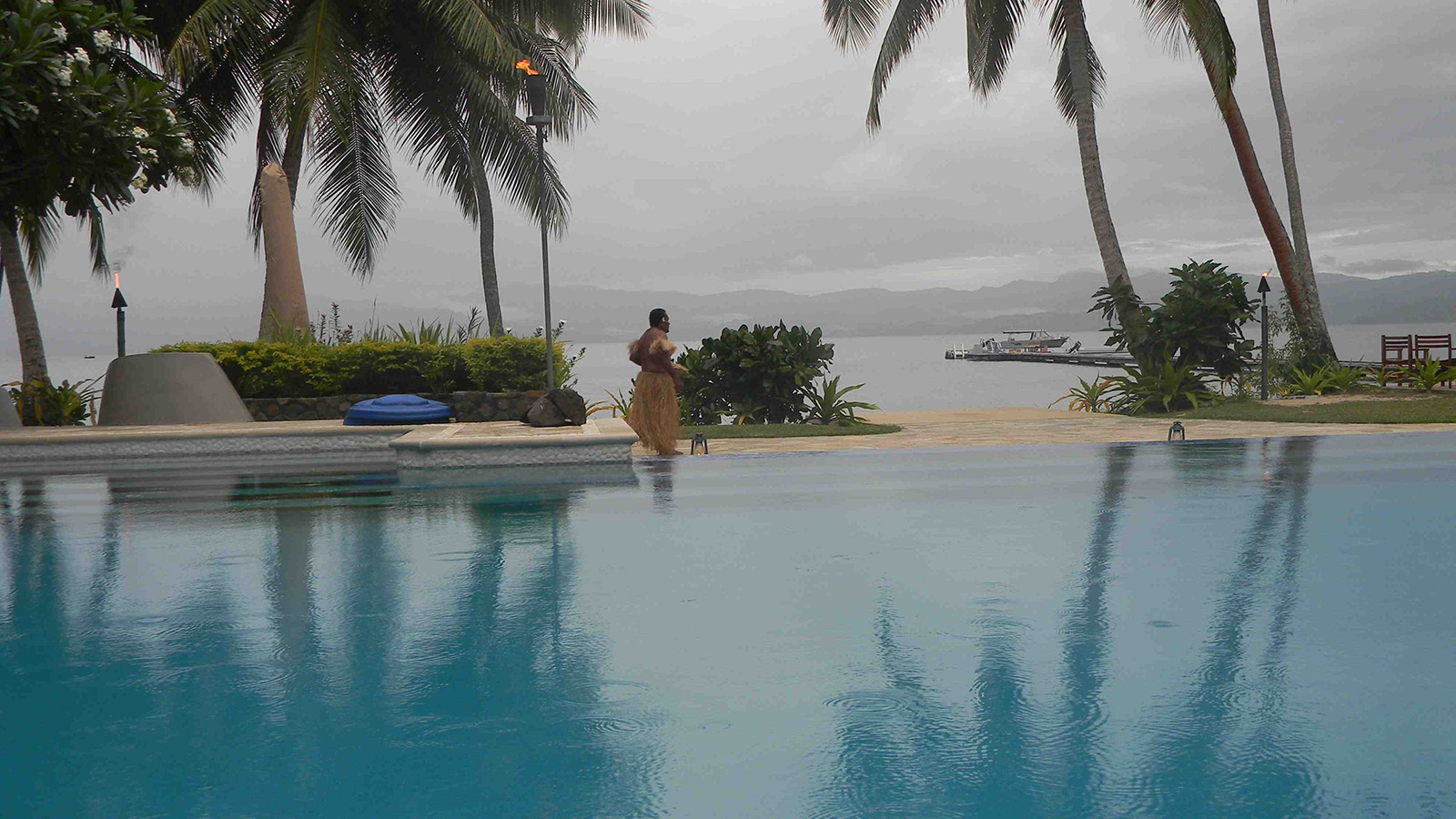 After we were greeted by a group of singing Fijians and offered a frosty beverage, one of my friends whispers to me, “They have their own private island.”