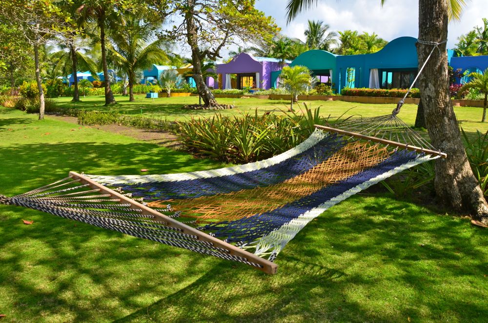 Each of the 20 guest villas is uniquely designed, in the distinctive bold style of architect and former owner Sherrill Broudy: a dynamic open-plan space, flooded with light, with slabs of rich colour. A high curving wooden ceiling echoes the sea and creates a soothing airy feeling, as does the private, walled terrace of each room. The walls are adorned in Sherrill’s wife Charlene’s unique paintings and rugs in saturated colours, reflecting her love of the natural tropical world. The effect is warm and welcoming and very individual: the antithesis of bland hotel rooms! There are 5 grades of villa, starting with Garden Bungalow, which although lovely, don’t have sea views. We’d definitely recommend splashing out on one of the beachfront options for that instant uplifting feeling in the morning, and lounging on your private terrace in the late afternoon. Of these, Beachfront Bungalows are the smallest, though these are already huge and include 28 feet of beachfront. Beachfront Villas are even larger and the Deluxe Beachfront Villas feature a private plunge pool on their terraces.