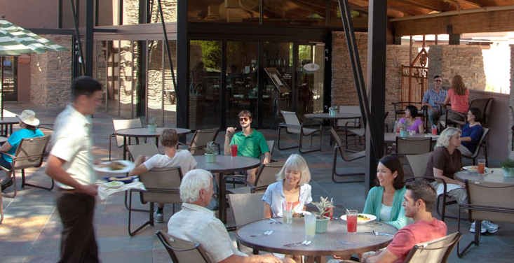 Besides the physical fitness aspect, Canyon Ranch programming also puts just as much emphasis on internal, emotional health. Many workshops are offered on topics such as meditation, cultivating inner peace, creating sacred space, harnessing your intuition and many more. Also offered are art and creative classes, bingo, live music, bingo, cooking demonstrations and hands-on classes. Food here, in fact, is something of an art form. Guests can dine in the dining room (by reservation for dinner) or at the more casual, order at the counter Double U Café. All dishes are described with their ingredients, calories, fat content, etc. The aim is to provide delicious and healthy gourmet cuisine, with snacks and drinks available all day long.