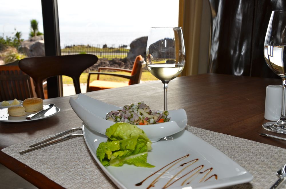 A highlight of a stay here is definitely the dining experience. The hotel excels with its seafood dishes, which are beyond outstanding. The main restaurant, Poerava, serves breakfast and lunch in a gorgeous setting overlooking the ocean. For evening cocktails and dining, Kaloa invites guests for a complimentary sunset cocktail. There is a small separate bar, along with several levels of private dining tables. The decor is minimalist and chic, and reminiscent of dining in a top continental restaurant. Both the service and food are top-notch in both dining rooms, as is the selection of Chilean wines offered to accompany the inventive, fresh dishes.
