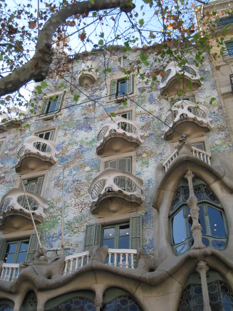 - Casa Batlló: A Gaudí home original where funky meets fantasy. A Modern/Art Nouveau marvel that should not be missed. One will be hard pressed to find a straight line; Rooms are curved sanctuaries. Intricate arches, carved wood and tile accents captivate the eye from every angle. The dragon-inspired rooftop offers an excellent view of the Eixample district and Passeig de Grácia, home to the city’s most elaborate residences and luxury brand shopping. Open Daily.