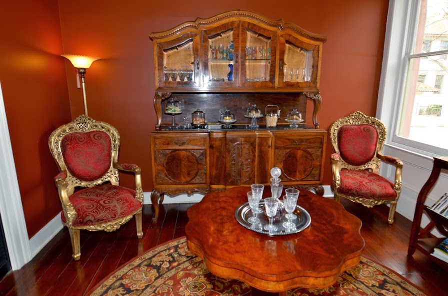 Alongside the renovated historic rooms and period furniture, each suite also offers all the modern luxuries such as custom-made plush mattresses and linens, extraordinary toiletries, complimentary Wi-Fi, private baths, hair dryer, iron and board, cable TV, CD & DVD player, well-stocked refrigerator, microwave oven, toaster, coffee pot, and premium coffee. Several have separate living rooms and/or whirlpool tubs.