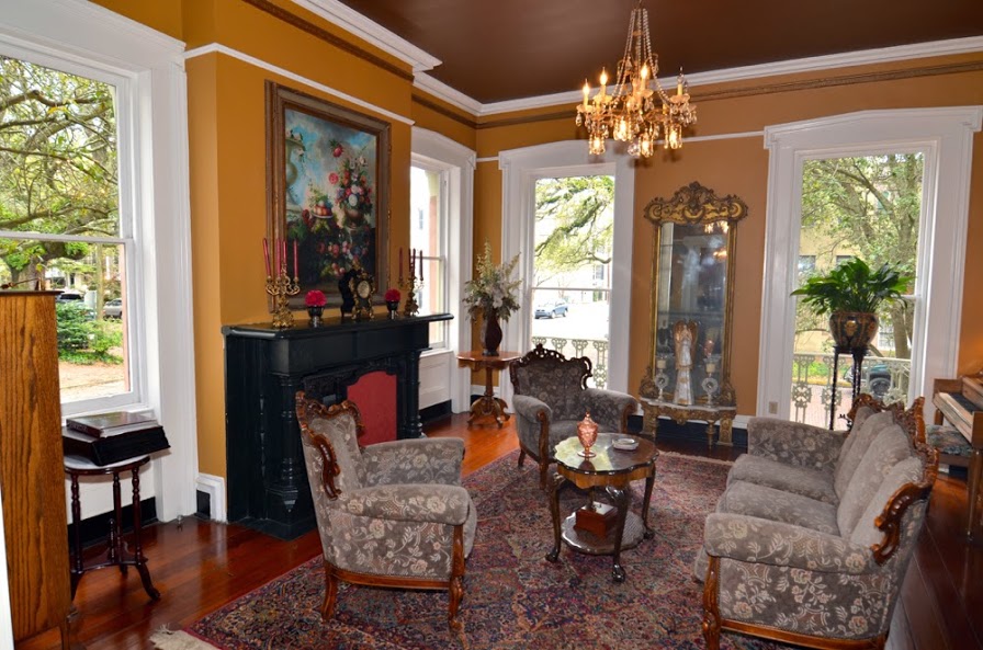 The historic Zeigler House Inn is located on Jones Street, which was called one of America’s prettiest streets by USA Today and Southern Living. Built in 1856, this Italianate home inn showcases gracious southern architecture, romantic splendor and the hallmarks of Savannah: wide verandahs, shady courtyards and museum-quality interior details such as pine and walnut staircases, carved ceiling medallions, original (non-working) fireplaces, and gorgeous chandeliers.