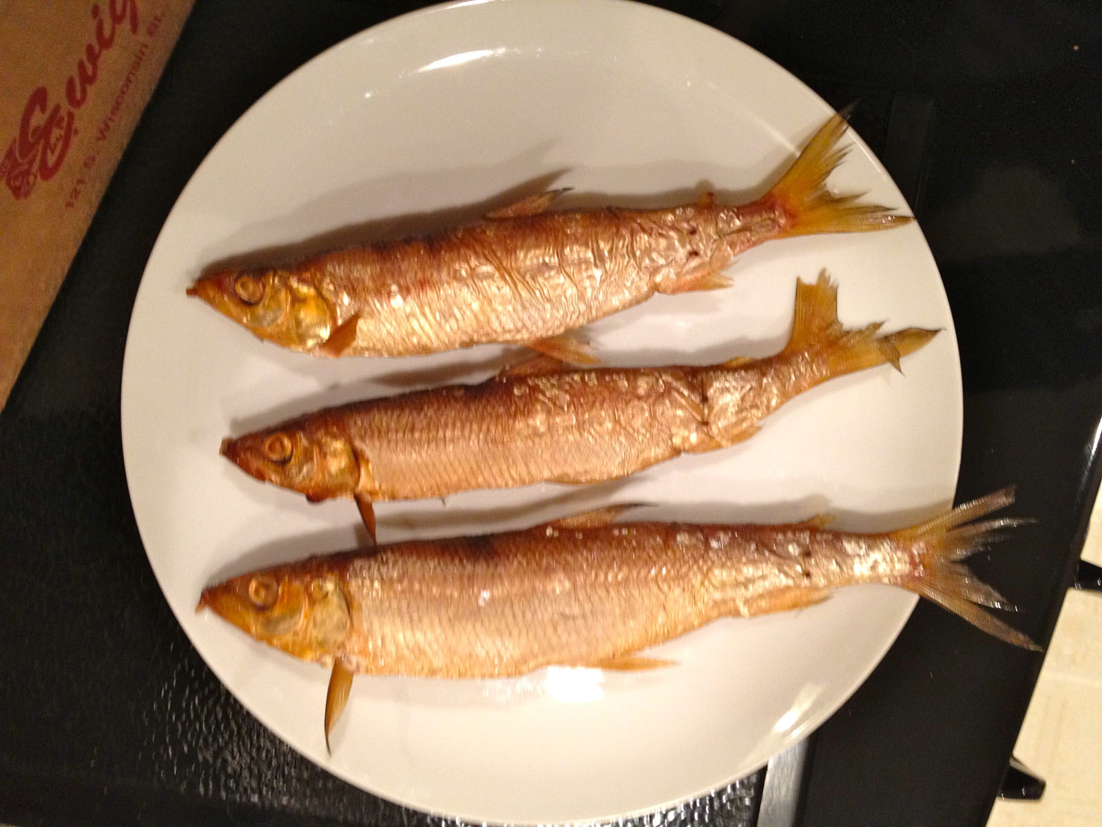 Once in Wisconsin I stood on the parent’s door step ringing the bell, my first words being … “hi, where are they?” They knew what I meant. Gosh the fish were awfully small, but incredibly delicious, just like I remembered them, best served with farm fresh tomatoes, and crackers. If you want to go all Eastern European gourmet, add a side of raw onions, lots of salt, matzoh, and herring in wine sauce for a tart contrast. Trust me, this is food bliss.