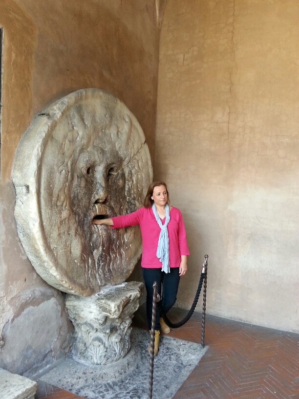 The Bocca della Verita (Mouth of Truth) was a fabulous find despite the lines. The over-sized marble man-like face is located in the portico of the church of Santa Maria in Cosmedin, which is home to the relics of Saint Valentine. The marble man’s mouth made movie history in the 1953 film Roman Holiday with Gregory Peck and Audrey Hepburn. Gregory Peck’s character plays up the myth behind the mouth during heated discussions.