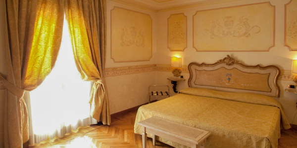 The interiors of the villas were restored to traditional elegance. The walls are embellished with warm pastel colors reminiscent of the antique Roman houses with decorative plastering and marble accents. Empire style furniture, oriental carpets, baroque-style bed covers and drapery blend beautifully with the fresco paintings. The bathrooms, dressed in exquisite Carrara marble, are modern and feature both soaking tub and/or shower. Select rooms offer a private balcony, terrace and Jacuzzi tub.