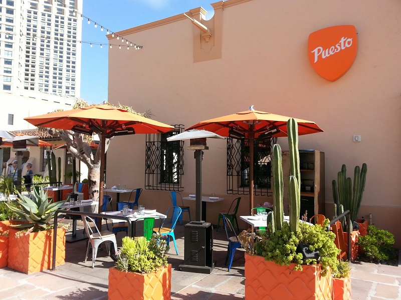 Puesto Restaurant (Seaport Headquarters Shopping Square): A lively bar/restaurant with a second location in La Jolla. Voted the Best Mexican Street Food Menu in San Diego. All natural meats, sustainable seafood and local organic greens. Snag a table on the brick outdoor patio for happy hour drink and food specials. Top Happy Hour Menu pick: The “Mix & Match” 3 Taco plate.