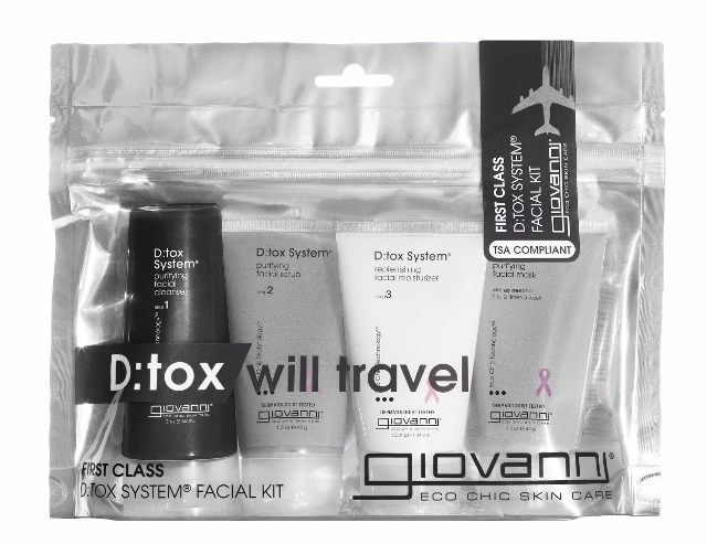 Giovanni’s signature D:tox facial skin care system is also now available as a travel kit.
