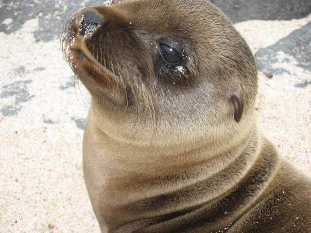 My eight-day cruise left from San Cristobal and included visits to the Genovesa, Isabela, Fernandina, Bartolome, Santa Cruz, the Charles Darwin Research Station, and Hood (Española) Island. I frolicked with fun-loving sea lions, watched (somewhat in horror) as a 500 pound tortoise tried to mate with a most disinterested female, danced with the blue-footed boobies (and wondered if they mated with the red-footed boobies, would the children would have purple feet?) laughed at the antics of the Galapagos penguins, felt sorry for the homely waved albatross (who suffer from months of really bad hair days, but still weren’t as ugly as the marine iguanas) and took a zillion pics of the endless array of birds, from the flightless cormorant to the dozen+ types of Darwin’s Finches.