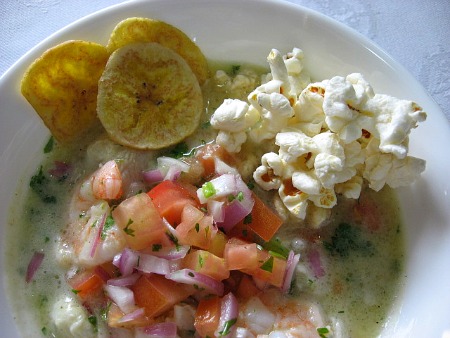 – Our Chef did a wonderful job keeping us happy and well-fed with three huge squares a day. Tasty snacks, served with a glass of exotic fruit juice, were always waiting for us when we returned from an island visit, just like after school treats. Meals included traditional Ecuadorian dishes (as well as more generic Continental offerings for those with less curious palates) such as llapingachos-cheesy potato cakes, hornado-slow roasted pork, humitas-Aztec style tamales, plantain pancakes and hot figs with cheese for dessert. But our hands-down faves were the shrimp ceviche served with crispy plantains and popcorn and any one of the Chef’s flavorful soups.