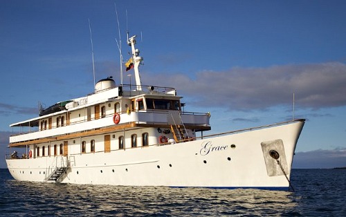 Half a century ago, Aristotle Onassis graciously gave his yacht to Princess Grace and Prince Rainier of Monaco for their wedding present, which the royal couple used for a romantic honeymoon cruise through the Mediterranean. During the years that followed, this classic craft went through many different owners and name changes, until Ecuador-based, Quasar Expeditions, one of the most experienced names in Galapagos travel for over 25 years, acquired the aging vessel in 2007. She took a couple of years off, “had some work done” (she always did have great bone structure) and later emerged with her understated elegance and former status fully restored. This proud beauty was then, most appropriately, re-christened M/Y Grace.