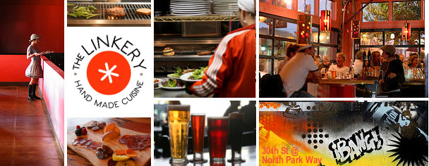 The Linkery, located in the up & coming artsy, foodie area of North Park, and features possibly the world’s best Sausage, in many delicious flavors, shapes and guises. Totally hip,original and refreshingly void of pretense, The Linkery would be my neighborhood restaurant if I lived in the nabe.